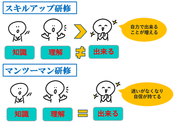 【出来る】に焦点を当てがちですが、インストラクターの誘導によって出来たとしても、理解が伴っていなければ、実務ではつまづいてしまいます。また、作図の流れの研修では、表面的な内容に終始し、実践に移るとケースバイケースという状況に、理解が伴わないと迷い疑問を抱き始めることがあります。ですから、スキルアップ研修では、知識・理解を多めに設定しており、ポイントになる箇所や参加者様に合わせて製図を行っている当社ならではの実務に応じたオペレーションの誘導を行います。