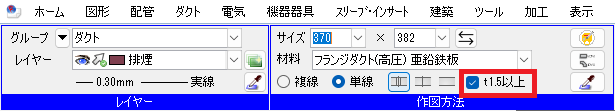Q【施工モード】ー【ダクト】 ルート作図時に、単線で1.6tのハッチングを入れるには?