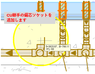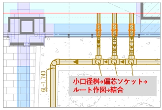 小口径桝の入れ方→偏芯ソケットの入れ方→ルート作図→結合