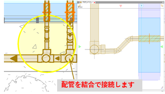 配管を結合で接続します