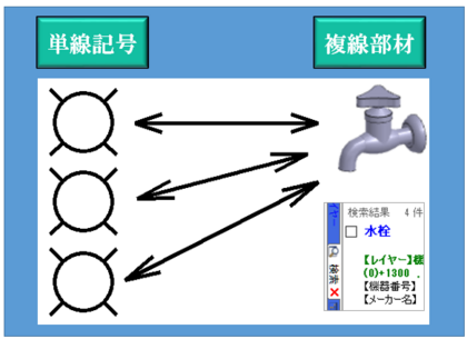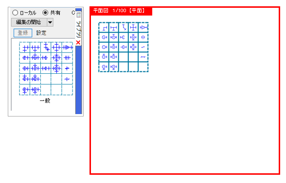 主に2次元の汎用図形は設計図の修正や竣工図の作成時に役に立ちます。また、特徴としましては、縮尺を変更しても記号が同じ倍率で変更されバラつきが出ないようにしています。また、記号のリストも増やし使用用途からsがせるようにしました。