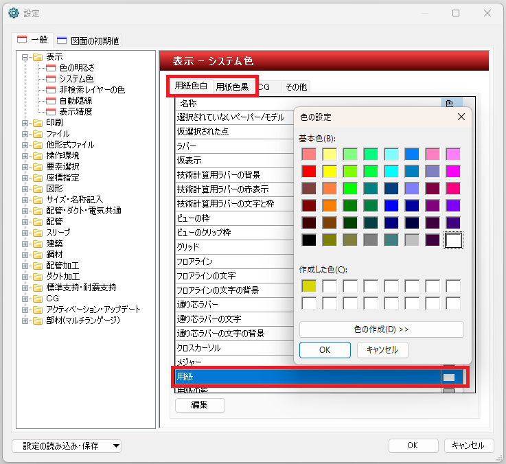 「集中して図面を追いたいときは黒」