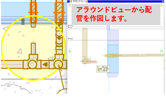 アラウンドビューを起動し、偏芯ソケットの接続口よりルートを作図します